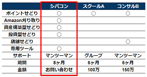 の3つを実践することです。シバコンでは稼ぎ続けていただくために、幅広い手法を取り扱っております。なので、一般的なせどりコンサルと比較して、飽和しにくいと考えています。